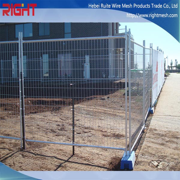 Outdoor temporary fence panel and base composed of welded mesh panel or chain link mesh panel and tubes. The fence, the post and the hook will be welded together. Between every two pieces of the ... View Video